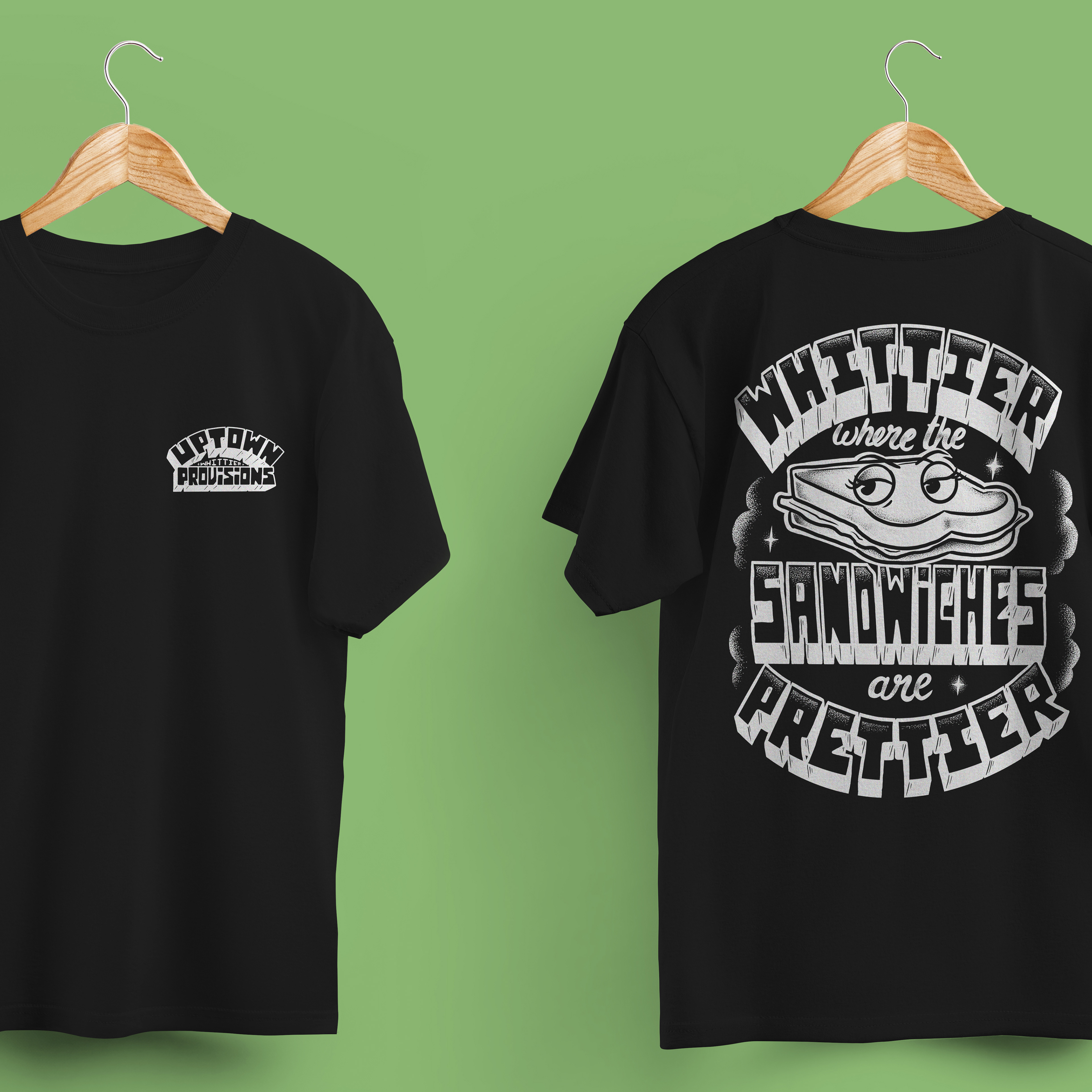 Based in Whittier, California, Uptown Provisions is a community favorite for sandwiches and local goods. I’ve collaborated with them on branding and merchandising, contributing hand-drawn illustration, layout work, and product design. This includes some of their most successful merchandise releases and ongoing creative projects.
